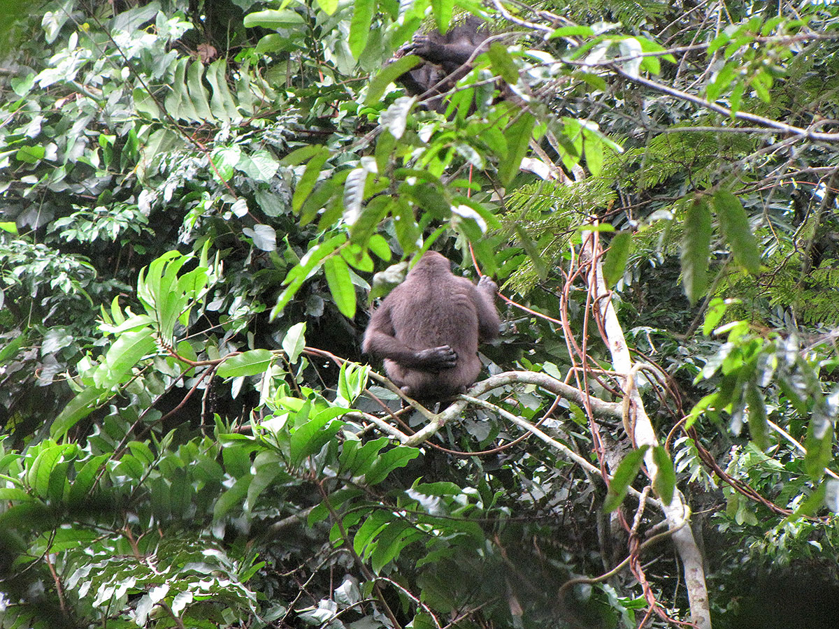 However, it is fair to say that Brian could see no such similarities when it came to comparing his and the monkey’s physical appearance. A de Brazza male is predominantly grey – with black legs and a black tail; Brian is pink – all over – and has no tail. The monkey has a face with an orange brow, white eyelids, a white muzzle and a white beard; Brian has a nondescript pink fizzog. And the de Brazza male monkey has a bright blue scrotum; Brian has only a bright blue shirt that he sometimes wears for gardening.